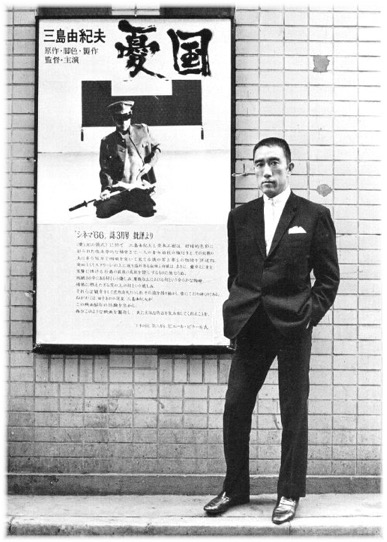 聽着三島由紀夫慷慨激昂表演的自衞隊員面面相覷,用一種疑惑的眼光望着手舞足蹈的大作家,甚至有人爆發出笑聲,如同是在看一出滑稽戲。面對如此反應的自衞隊員,三島大失所望,退回了總監辦公室,依照日本武士傳統進行了切腹。這一幕幾乎是他於1966年自導自演電影《憂國》的現實重現。在這部電影中,三島扮演的陸軍中尉因未能追隨戰友參加“二二六事件”而選擇切腹自殺。僅僅四年後,三島在自衞隊基地重演了這一幕。