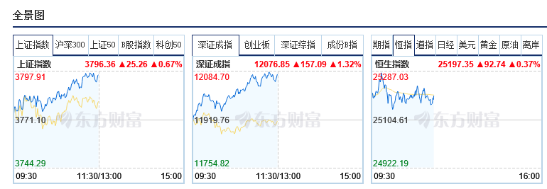 8月22日,A股三大股指開盤漲跌不一,隨後集體飄紅。截至11點30分,滬指漲0.67%,報3797.91點,向3800點發起衝擊,深證成指漲1.32%,創業板指、科創50指數大漲均創三年新高。滬深兩市半日成交額1.51萬億,較上個交易日縮量569億。