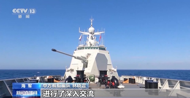 中方艦艇編隊 林曉宣:聯演開始以來,雙方官兵高度互信、默契配合,從戰役、戰術多個層面進行了深入交流,順利完成預定演練課目,進一步提高了雙方遂行海上聯合行動的能力水平,展現了共同應對海上安全威脅、維護國際和地區和平穩定的決心能力。
