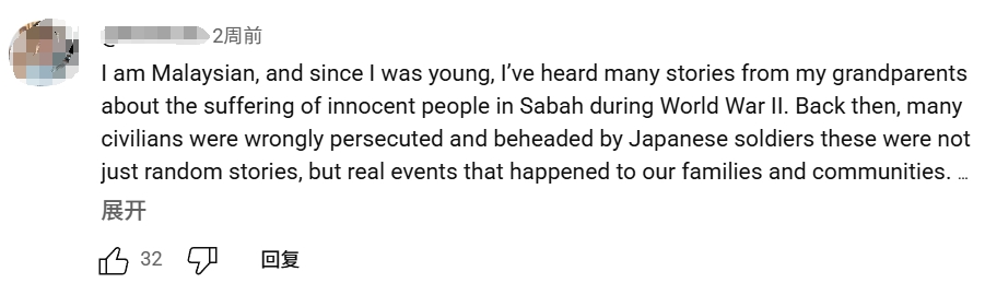 “我是馬來西亞人,從小就從祖父母那裏聽到許多關於二戰期間沙巴無辜平民遭受苦難的故事……每一位經歷過戰爭的馬來西亞老人都清楚地記得這些事情。這是我們歷史中痛苦但真實的一部分……”