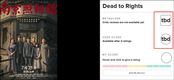 截至北京時間8月22日上午11時30分,Metacritic行業評分和用户評分均顯示“待確定”(tbd,to be determined),其中用户評論只要滿四條就能開分。 網站截圖