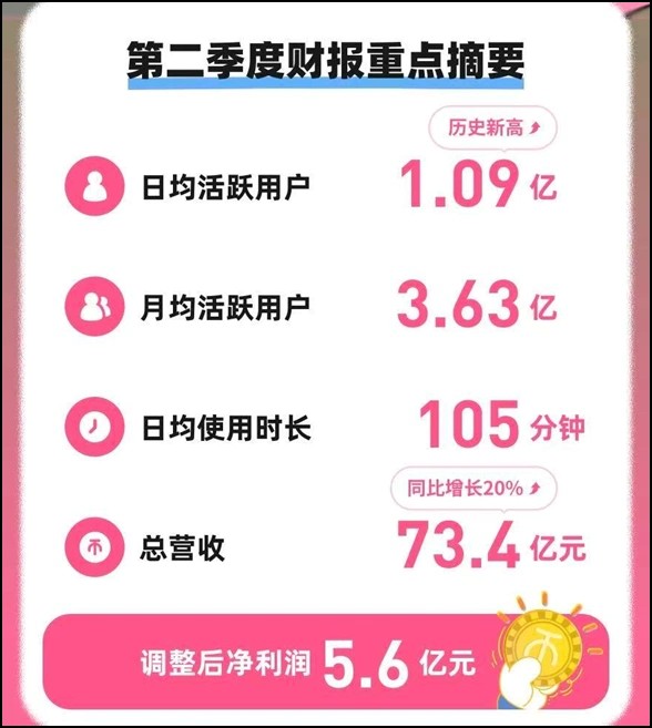 二季度,B站廣告業務收入為24.5億元,同比增長20%;遊戲業務收入為16.1億元,同比增長60%。運營效率的提升與高毛利業務的快速增長,推動B站毛利潤同比增長46%,毛利率連續十二個季度環比提升至36.5%;淨利潤和調整後淨利潤均創下歷史新高,分別為2.2億元和5.6億元。