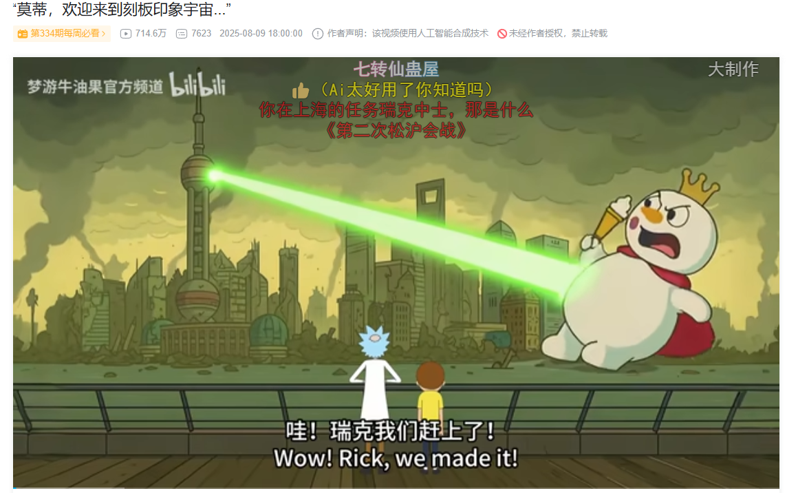如果説AI視頻對於電商來説是帶貨效率的提升,那麼對於UP主和B站而言,AI視頻可能就是他們的未來。