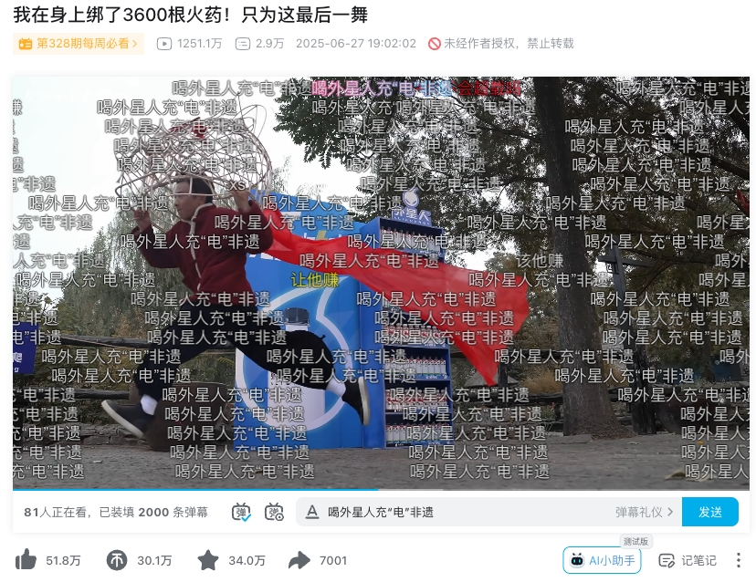 其中,一條記錄打鐵花的視頻全網傳播量高達3億次,她也成為首位打鐵花女子傳承人。大量粉絲通過轉贊評互動表達自己對傳統文化的熱愛和認同。