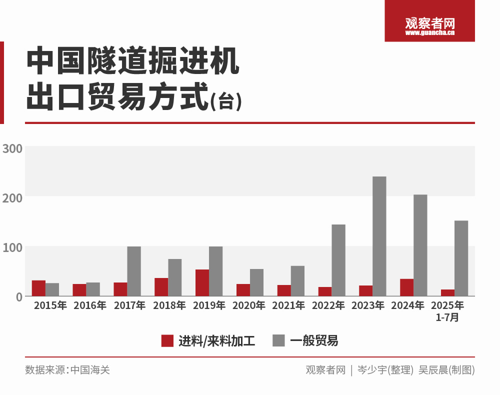 2017年開始,“一般貿易”的盾構機就形成壓倒性優勢,到了2022年又有一波突飛猛進。