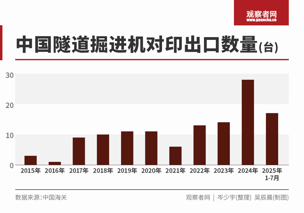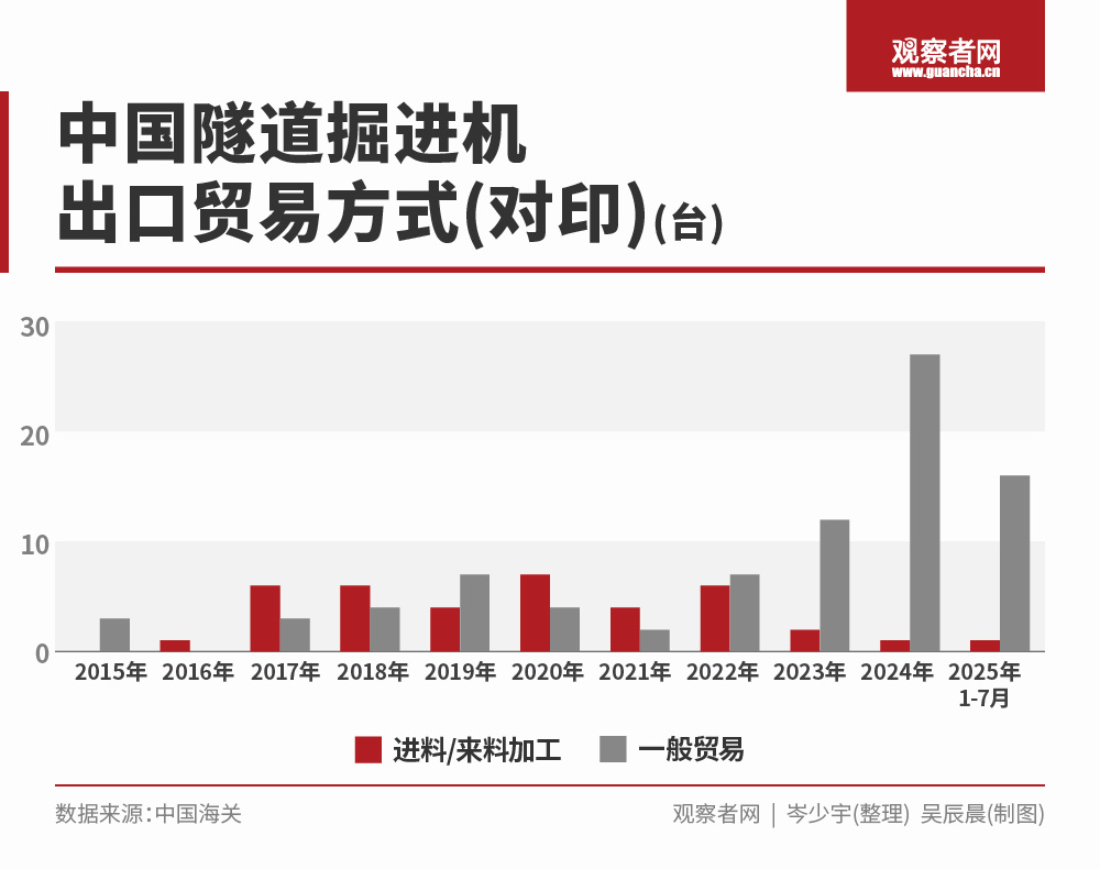 印度進口量不大,就和其他隧道挖掘設備混在一起了。