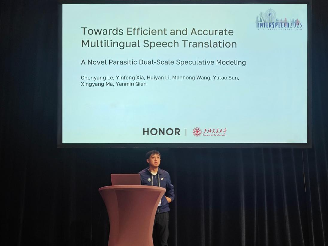 8月17-21日,國際音頻領域頂級會議INTERSPEECH在荷蘭鹿特丹舉辦。榮耀聯合上海交通大學完成的兩篇聚焦端側多語種任務的研究成果成功入選INTERSPEECH2025錄用論文,並受邀在會議上作技術發表。作為全球語音科學與技術領域最具權威性的學術會議之一,INTERSPEECH的認可體現了榮耀在端側AI語音技術領域的持續努力與技術積累,這表明榮耀在全球化的AI技術交流中,取得了一定進展。