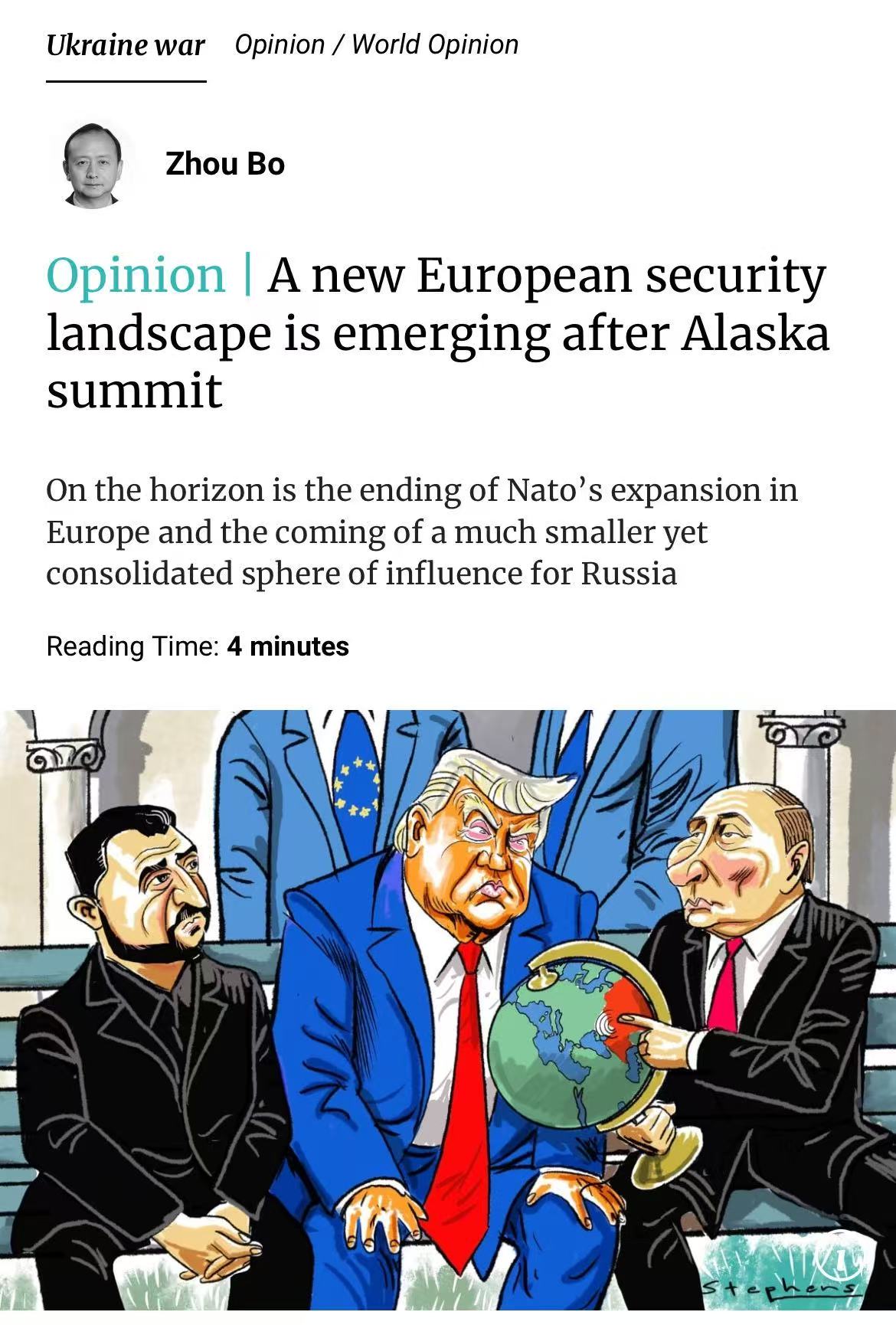 Club提要:8月20日,清華大學戰略與安全研究中心研究員周波在《南華早報》發表題為“A new European security landscape is emerging after Alaska summit ”(《阿拉斯加峯會之後,歐洲新的安全格局正在浮現》)的評論文章。