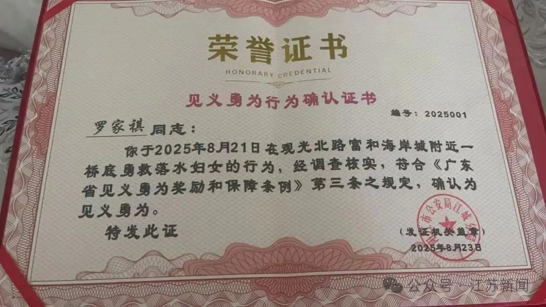 近日,廣東陽江一名17歲的少年羅家祺跳水救六旬落水老人不幸遇難去世,事後獲當地見義勇為表彰,引發關注。
