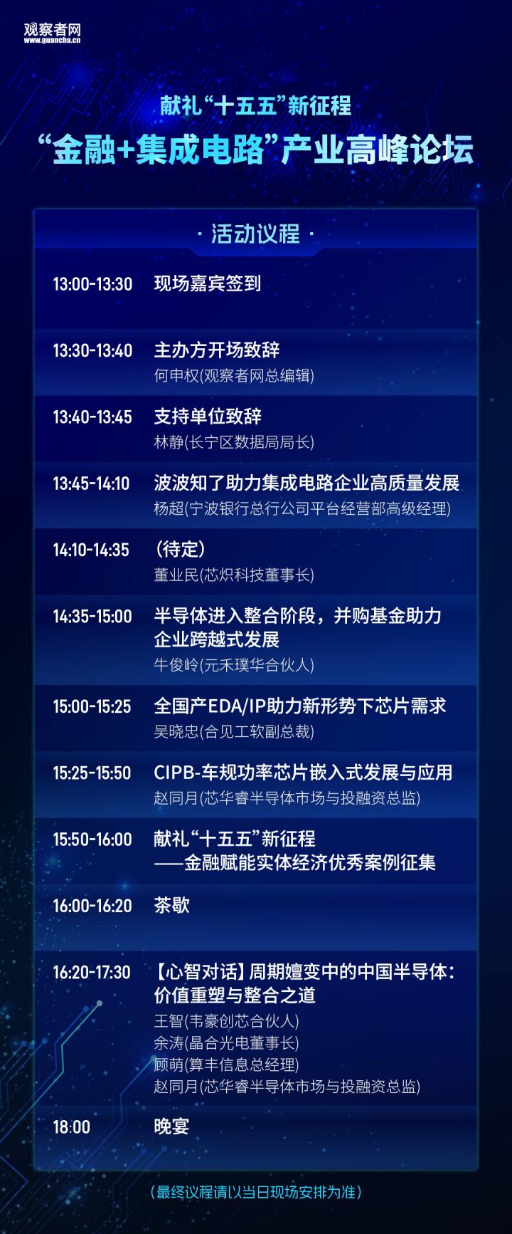 倒計時3天!觀察者網“金融+集成電路”產業高峯論壇議程出爐