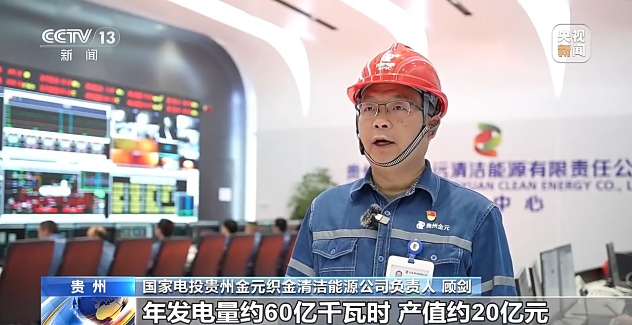 國家電投貴州金元織金清潔能源公司負責人 顧劍:該項目全部建成投運後,年發電量約60億千瓦時,產值約20億元,預計每年減排二氧化碳30餘萬噸,相當於植樹200萬棵。