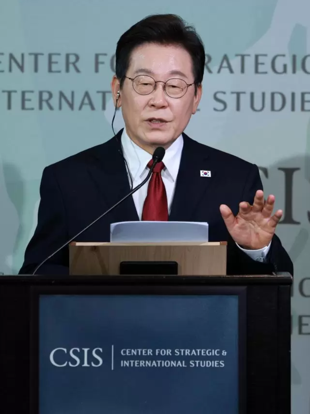 李在明25日(當地時間)在華盛頓特區國際與戰略研究中心(CSIS)發表演講。韓聯社
