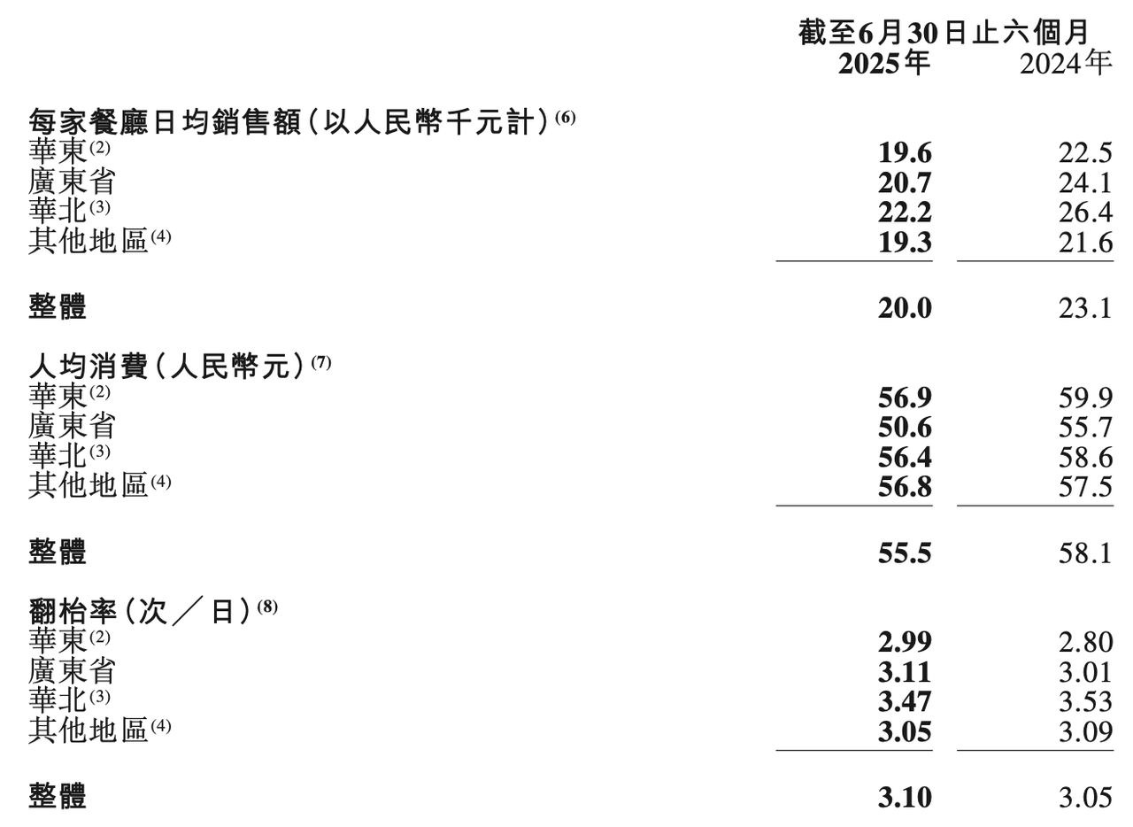 截至6月30日,餐廳經營、外賣業務和其他業務分別實現收入17.58億元、5.24億元和0.08億元。其中,外賣業務增幅高達74.2%,佔整體收入的比例提升至22.9%。