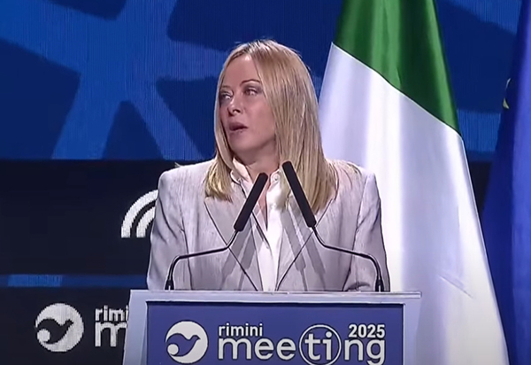 當地時間8月23日,意大利總理梅洛尼在一年一度“裏米尼會議”(Rimini Meeting)上發表講話。 視頻截圖