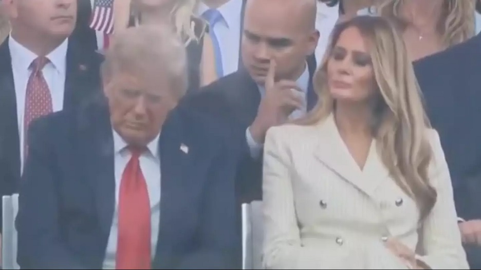 士兵沒有精神,總統自然也沒有精神,圖為在閲兵式現場被拍到疑似打起瞌睡的特朗普