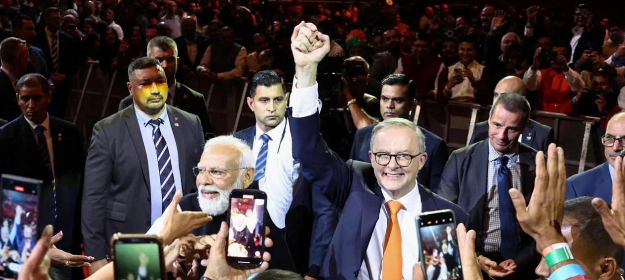 2023年G20峯會前夕,莫迪在悉尼奧林匹克公園組織2萬人瑜伽秀,澳大利亞總理阿爾巴尼斯陪同擺瑜伽體式,印媒稱之為“世界跟着印度節奏做瑜伽”。這類活動,大大增強了莫迪的全球影響力。