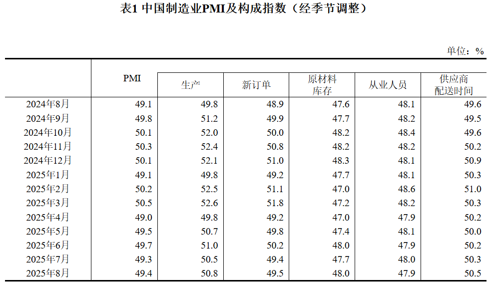 8月31日,國家統計局網站公佈2025年7月中國採購經理指數運行情況。
