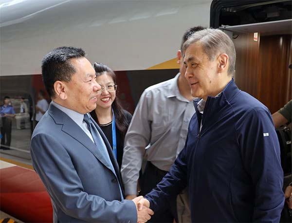 8月30日,上海合作組織秘書長葉爾梅克巴耶夫(右)抵達天津出席上合組織峯會。 上海合作組織官網