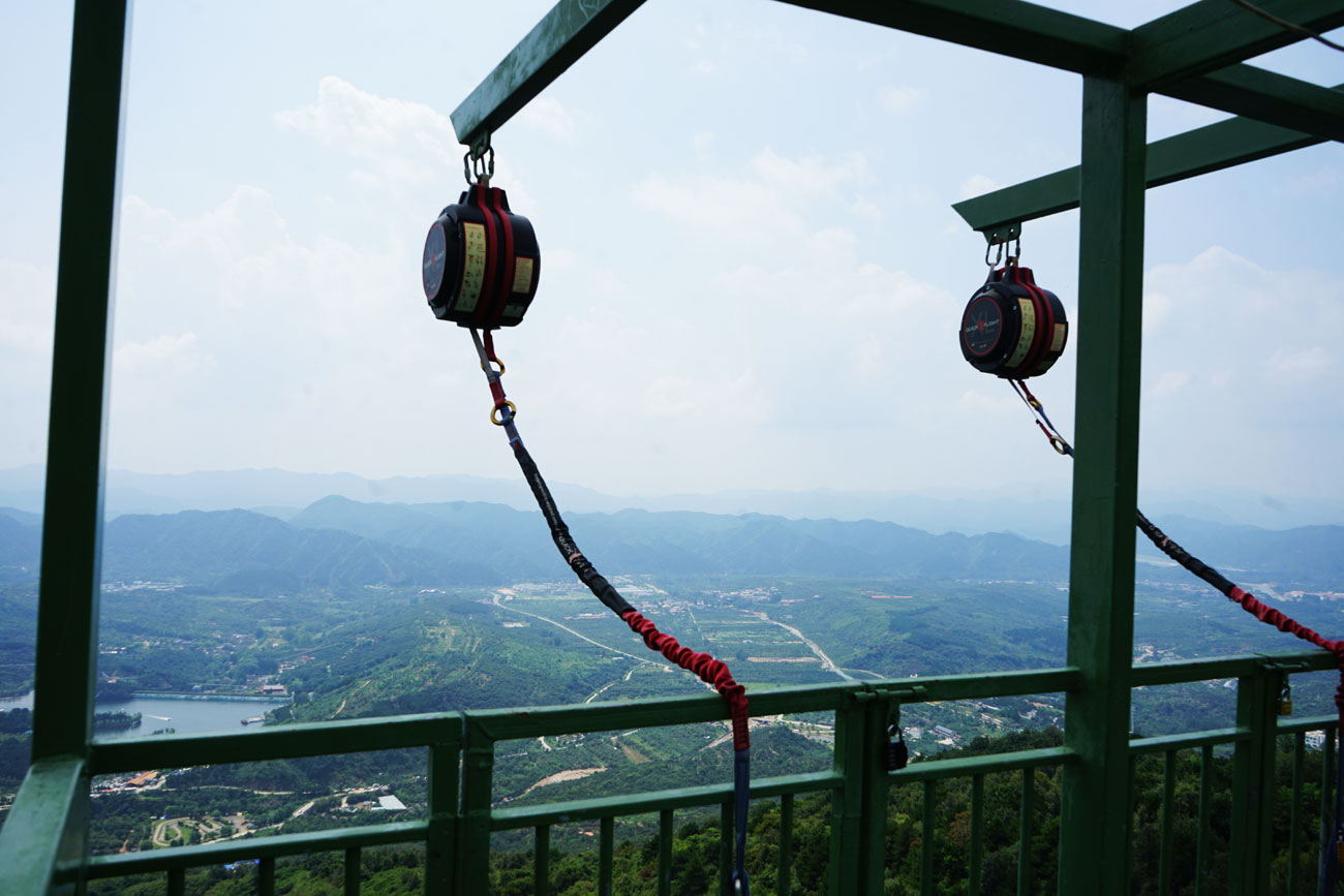天津薊州車神架風景區“天空之眼”玻璃觀景平台搭載的“窩囊版蹦極”成了這個暑期除漂流外,最受歡迎的項目之一。“每天有超過300名遊客排隊體驗。”該景區市場營銷部主任李保剛對觀察者網介紹,與傳統蹦極項目相比,這個蹦極要‘小’得多,高度落差大約有25米,主要是考慮到現在相當多的年輕人想玩蹦極又不敢跳的心理,‘小蹦極’能滿足這樣一部分遊客需求,既滿足了刺激、冒險的慾望,又獲得了體驗蹦極的樂趣。”