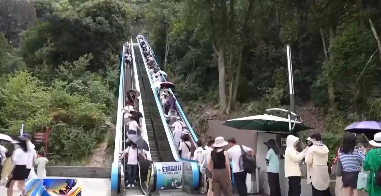 在今年暑期,浙江、江西等多個山嶽型景區的爬山電梯引發無數遊客的興趣,“無痛爬山” 也成為遊客登頂的優選。有遊客在社交媒體發文稱,“你為什麼登山?因為電梯在那裏。”