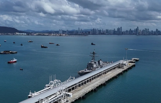 8月31日,美國海軍導彈驅逐艦桑普森號停靠在巴拿馬運河入口附近