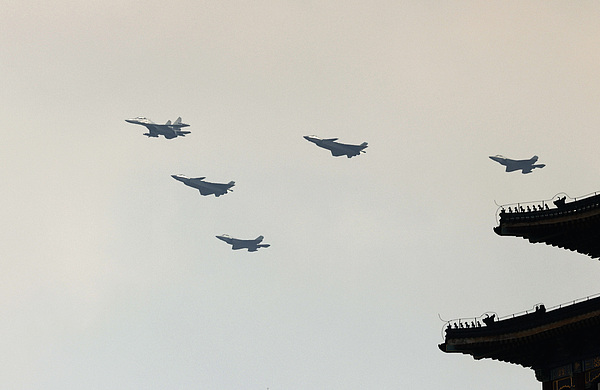 空中編隊飛過北京上空 視覺中國