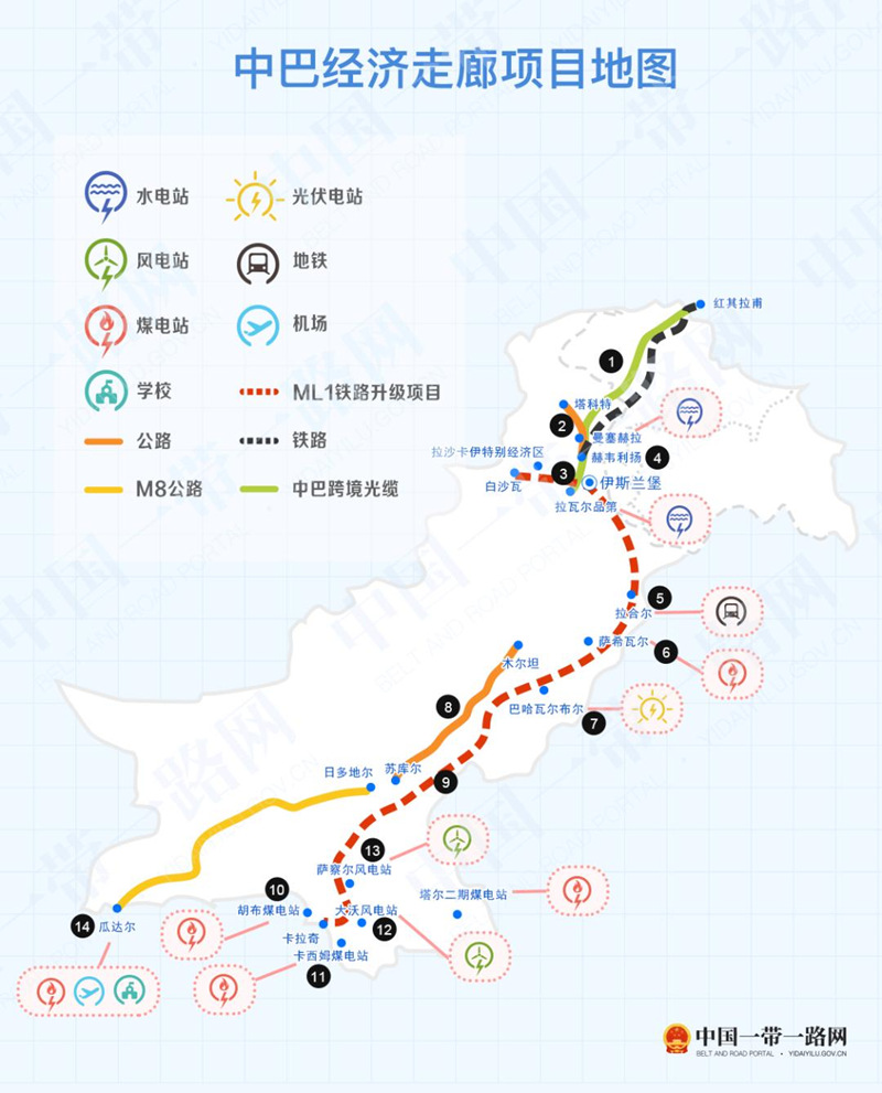 中巴經濟走廊項目地圖 中國一帶一路網微信公眾號