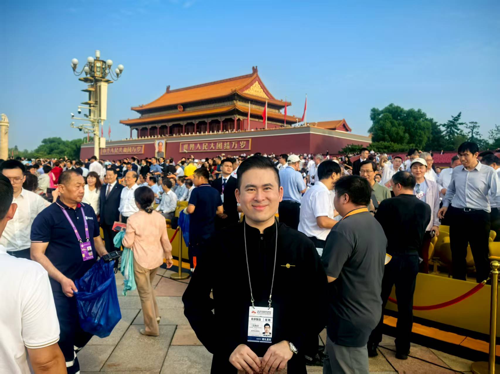 王炳忠先生在天安門廣場右側的觀禮台 作者供圖
