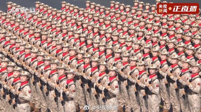 9月3日上午,紀念中國人民抗日戰爭暨世界反法西斯戰爭勝利80週年大會在北京天安門廣場隆重舉行。參加閲兵的女民兵方隊正式亮相。