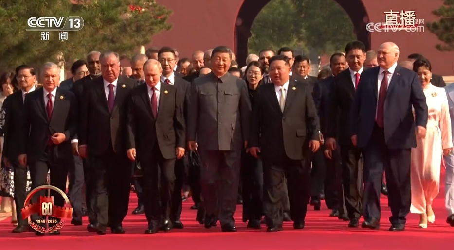 9月3日上午,紀念中國人民抗日戰爭暨世界反法西斯戰爭勝利80週年大會在北京天安門廣場隆重舉行。紀念大會開始前,習近平和夫人彭麗媛在端門外廣場迎接出席大會的外方代表團團長及其配偶。今天他們齊聚北京,紀念這一偉大日子。