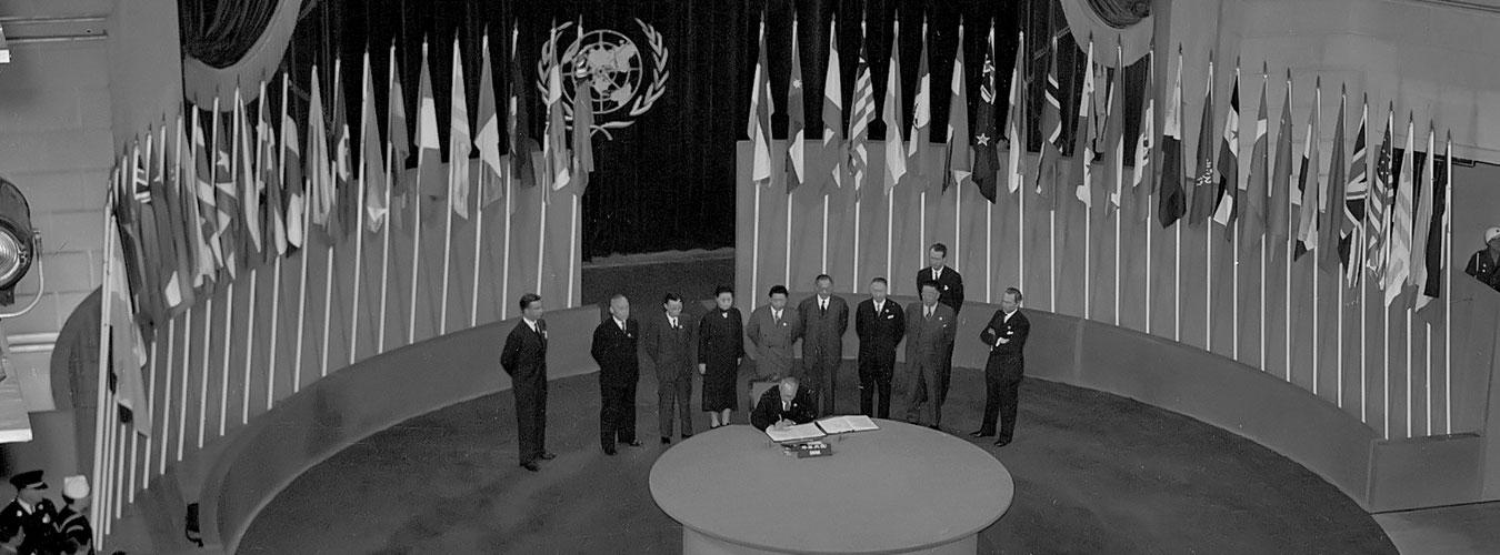1945年6月26日,各國代表在舊金山退伍軍人禮堂舉行了《聯合國憲章》簽署儀式。中國是第一個在憲章上簽字的國家。