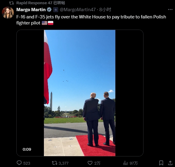 9月3日,波蘭總統到訪美國,特朗普出動F16和F35戰機迎接 社交媒體
