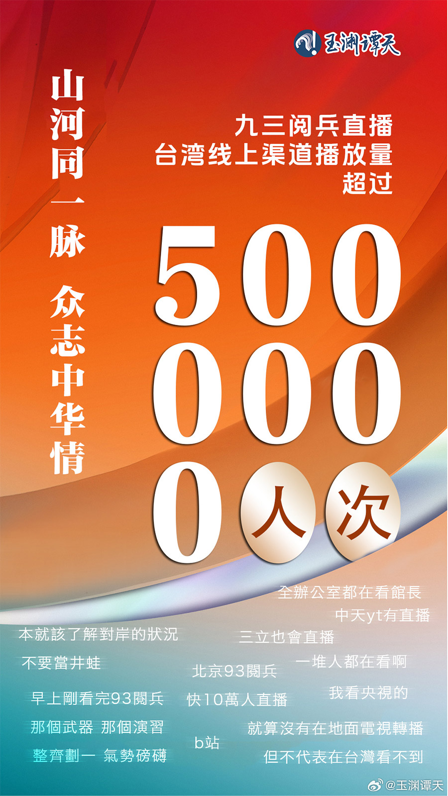 今年以來,民進黨當局加強對兩岸交流的限制。記者注意到,台灣線上渠道這次的直播存在限流情況,比如,某些頻道的即時在線人數剛剛到10萬左右時,立馬降至8萬。台灣網友進一步印證,他們沒有電視轉播。面對這些阻礙,500萬,就是最好的答案。