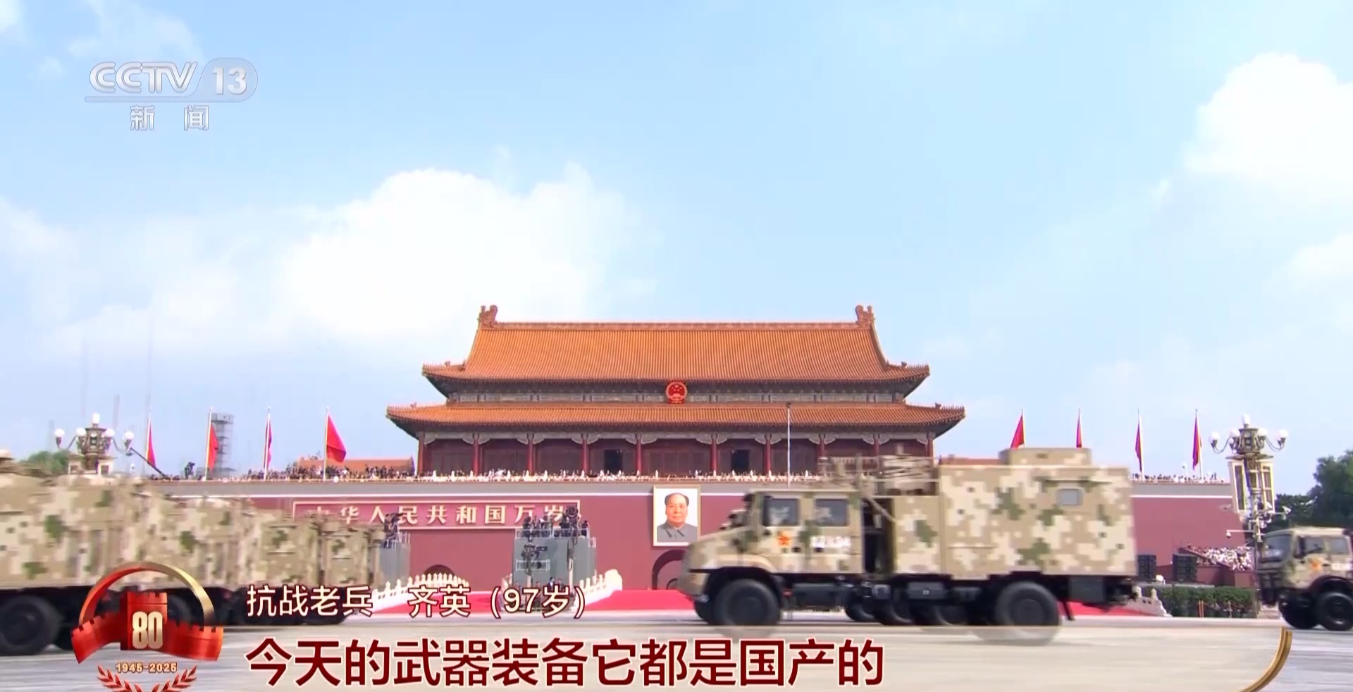 抗戰老兵 齊英:今天的武器裝備都是國產的。國產的也很先進在世界上,戰機、轟炸機、航母全都是國產的,國防力量強大。高興,珍惜現在的生活,祝國家繁榮昌盛,越來越好。