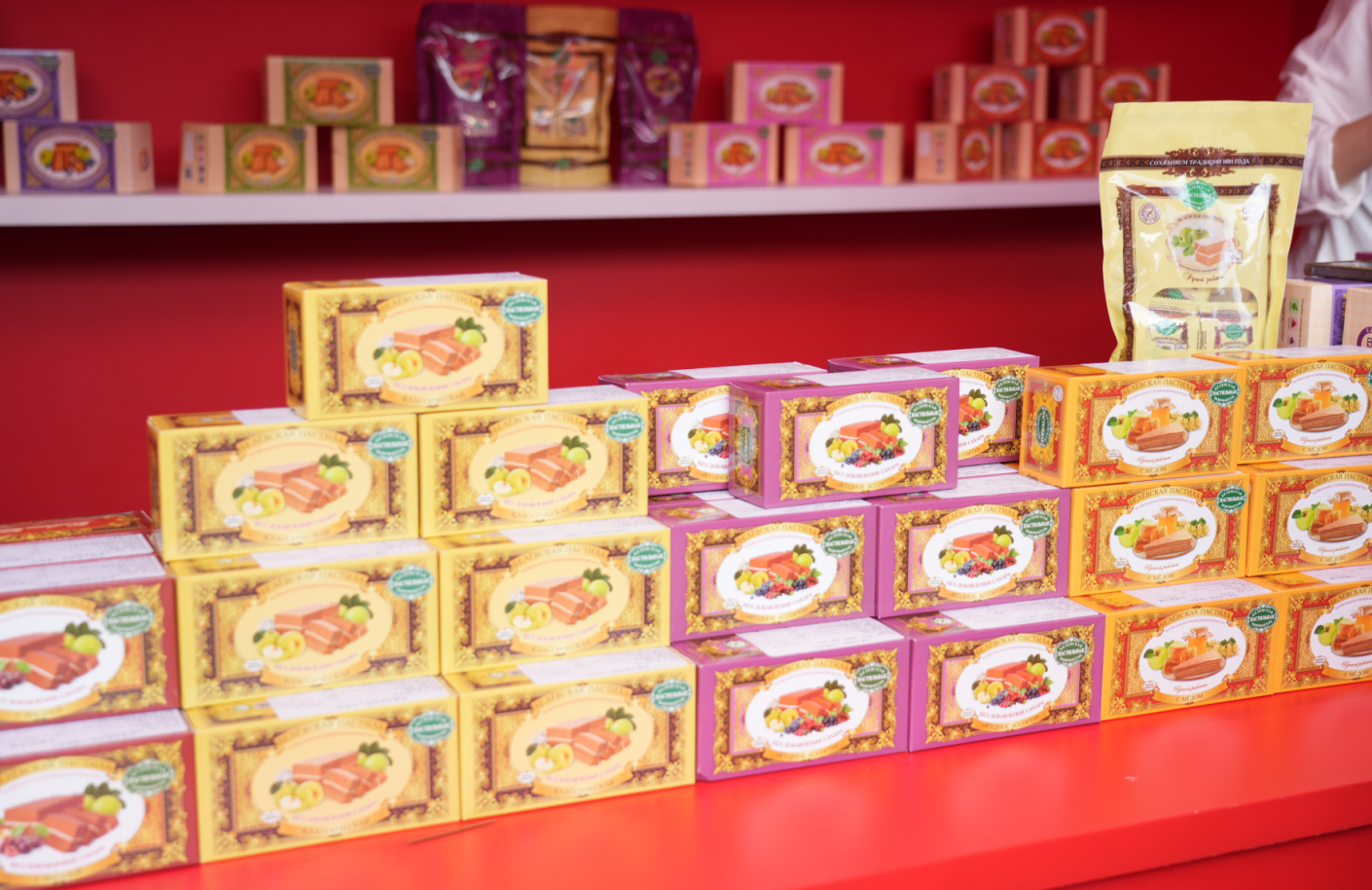 在此次北京舉辦的“俄羅斯製造”節慶集市,有來自俄羅斯26個地區的40個品牌參展,展出商品共500餘種,涵蓋從食物到化妝品、民間手工藝品等多個品類。其中最引人矚目的,當然還是琳琅滿目的食物,俄羅斯產的巧克力、餅乾、麪粉、蜂蜜和酒水的名聲早就家喻户曉,活動現場還設置了試吃角,遊客們大排長龍在這裏享受新鮮出爐的俄式美味。