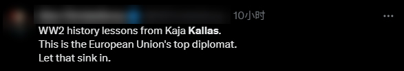 “這就是卡拉斯的二戰歷史課,她可是歐盟最高外交官,”一名網民諷刺道,“讓我們好好消化一下。”