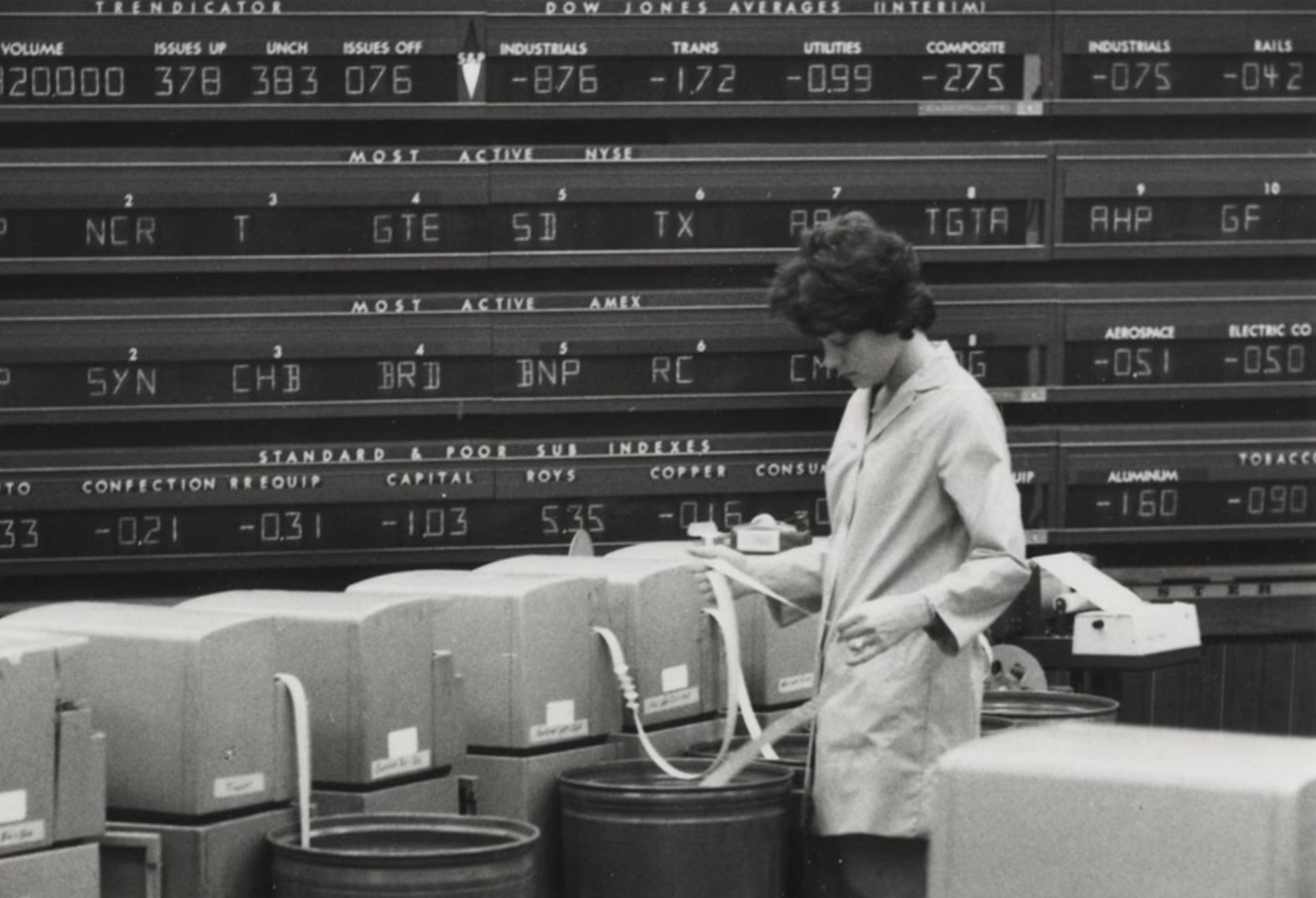1960年代,另一場危機悄然襲來。隨着日均交易量突破1200萬股,紙質交割系統徹底崩潰。1968年的“文書危機”中,交易所甚至不得不每週關閉兩天來處理積壓文件,數百萬美元證券遺失或失竊。這場運營災難促使紐交所大力推行電子化,1976年上線的DOT系統標誌着數字化交易時代的開端。