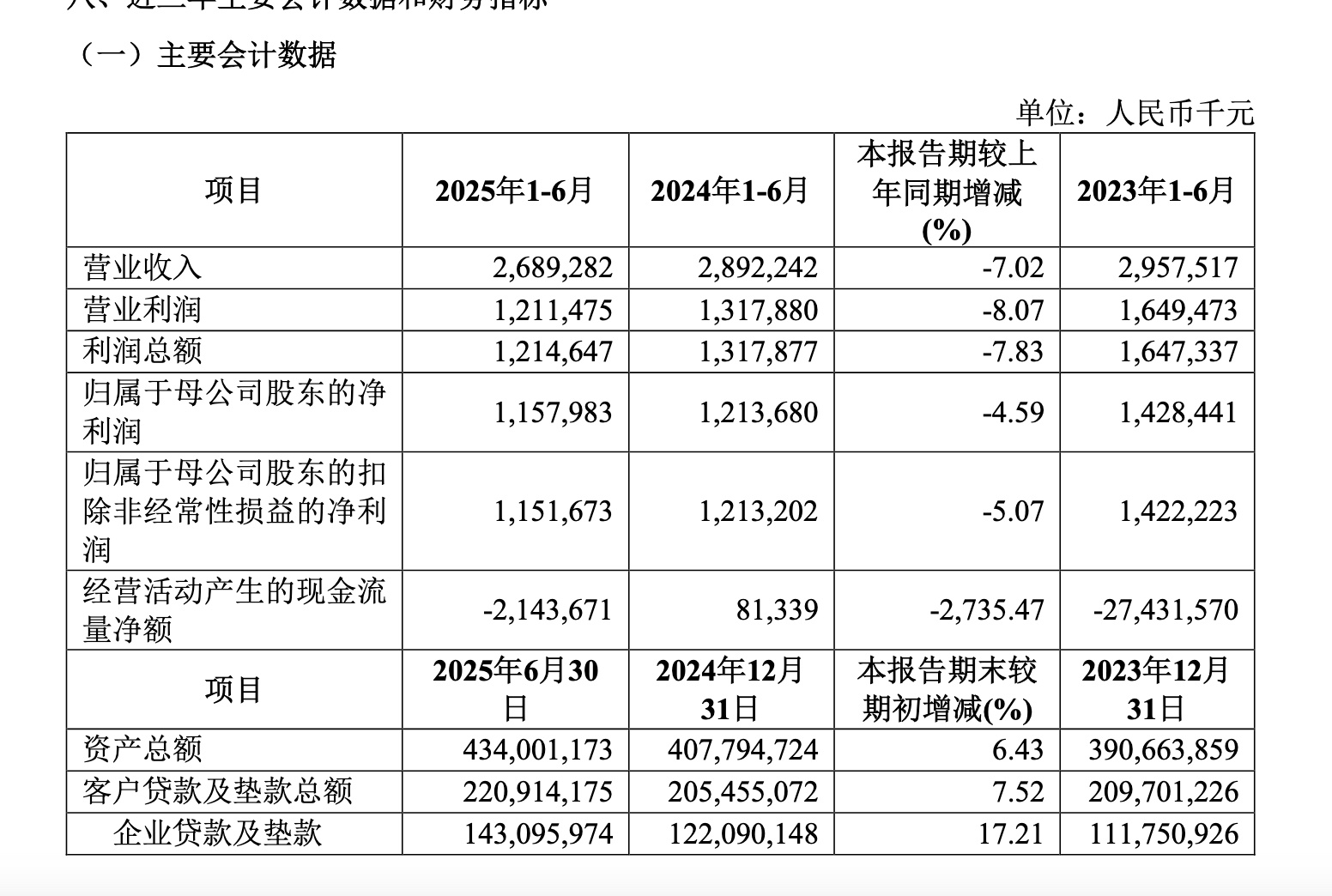 9月4日,廈門銀行(601187.SH)召開半年度業績説明會,新任董事長洪枇杷交出其上任後的首份半年度“成績單”。儘管二季度單季營收環比增長21.45%,呈現回暖勢頭,但整體業績仍延續了一季度以來的“雙降”態勢:上半年實現營業收入26.89億元,同比下降7.02%;實現歸母淨利潤11.58億元,同比下滑4.59%。