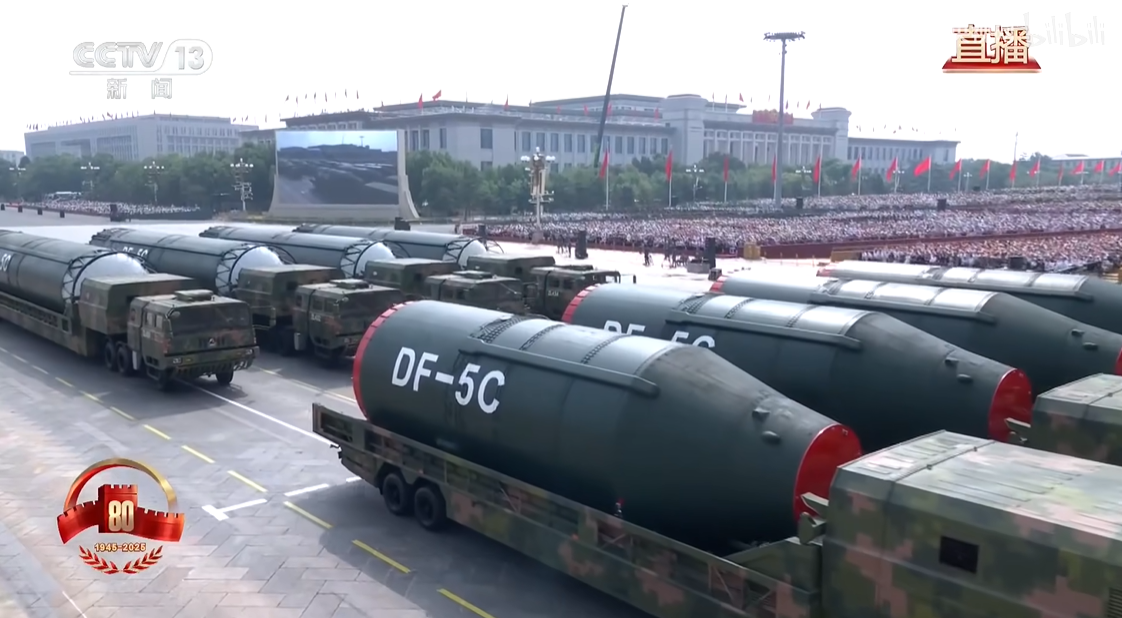 我説句良心話,原來的那些軍迷,都是按照圖像來猜,簡直就是望文生義嘛,其中的機密,知道的人不會很多。DF-5C超級大,你很難想象,在現場看就像一個商輪的頭那麼大,非常震撼。上面的字母DF-5看得非常明顯,我坐的位置不錯,就在前排,看得非常清楚。這些武器沒人看得懂是做什麼的,我覺得,既然在閲兵式上沒有正式的説明,那我們也不能亂講,反正最直觀的感受就是震撼。