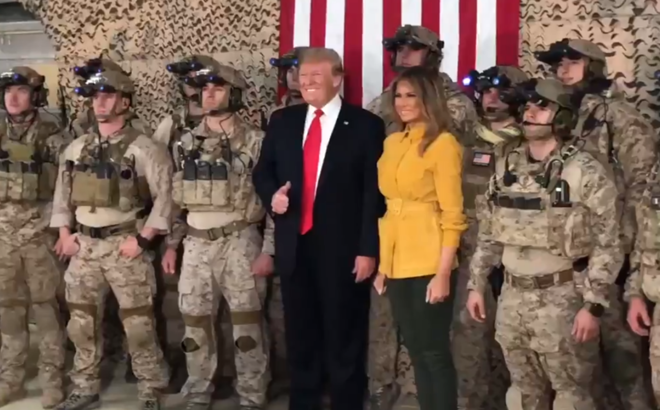 2018年,特朗普訪問伊拉克美軍基地時,現場視頻曝光了海豹突擊隊隊員的面容。