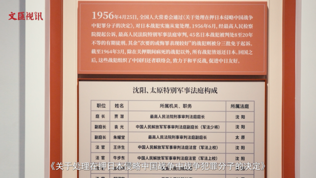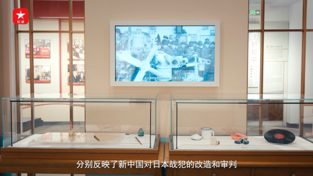 在上海淞滬抗戰紀念館《正義昭昭 大道同行——戰後審判與世界和平主題展覽》中,展示了兩段珍貴的歷史影像,分別反映了新中國對日本戰犯的改造和審判。