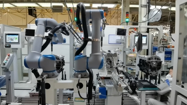 多可協作機器人在大眾一汽位於大連的發動機工廠上崗“擰螺釘”等場景