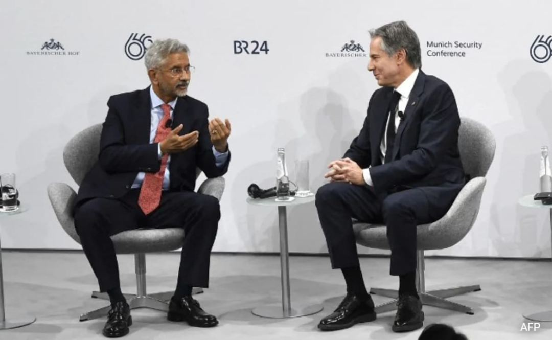 蘇傑生(左)與布林肯在慕尼黑安全會議的小組討論中新德里電視台報道配圖