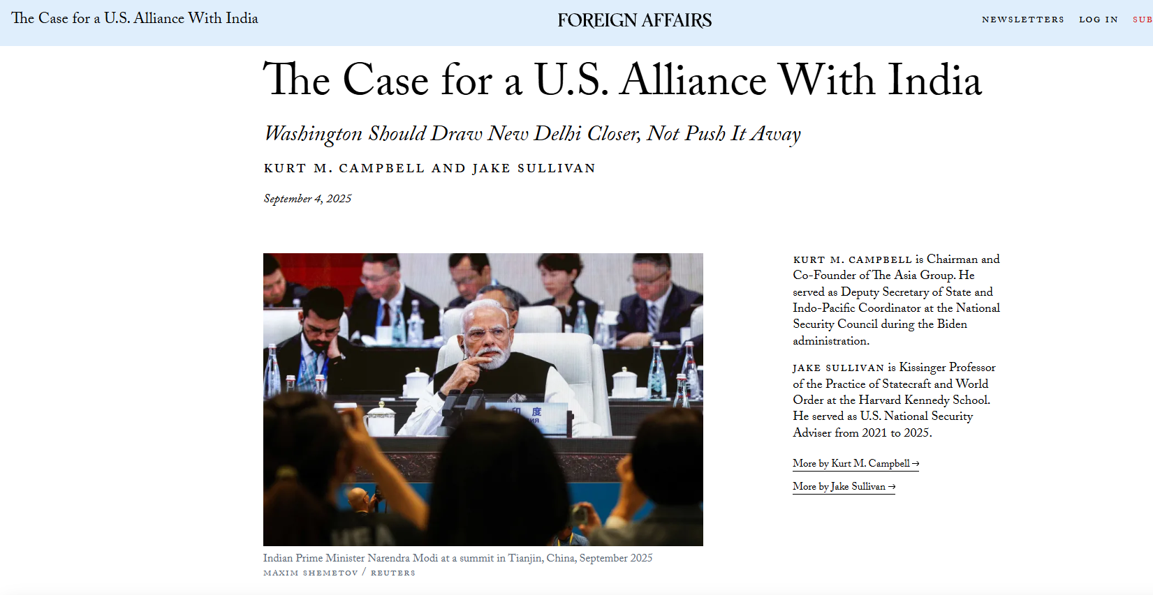 文章轉自《外交事務》於2025年9月4日發表的文章,原題為“The Case for a U.S. Alliance With India:Washington Should Draw New Delhi Closer, Not Push It Away”,文章有刪節,小標題為譯者自擬。為幫助讀者理解當前美印關係的複雜性,觀察美國全球戰略佈局,歐亞系統科學研究會特編譯本文。