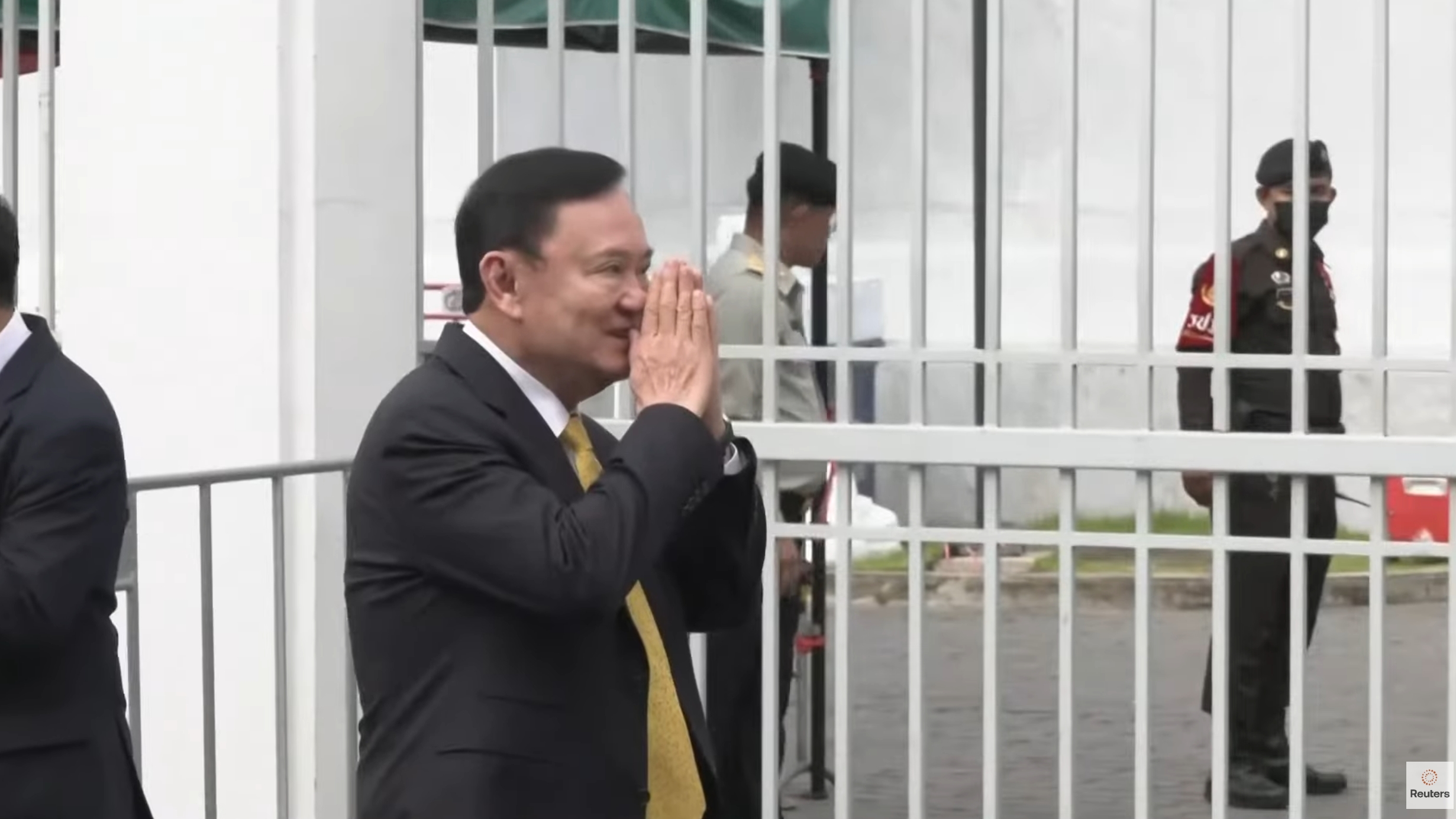 當地時間週二,泰國前總理他信抵達泰國最高法院。路透社視頻截圖