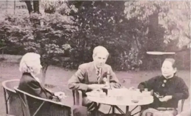 詹姆斯·貝特蘭(中)在宋慶齡(右)上海寓所