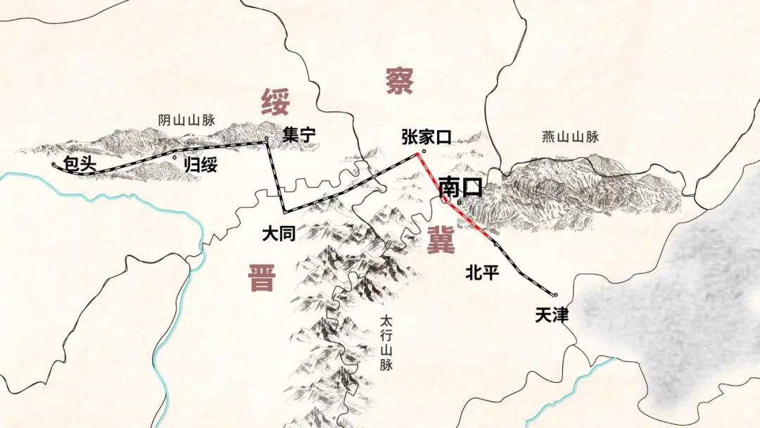 為什麼南口至張家口是日寇兵鋒所指呢?因為南口至張家口位於冀察晉綏4省邊界,又是陰山、燕山、太行山脈的交界地區,4省3山交織的地理特點,決定了它在軍事戰略上的重要地位。南口為太行山、燕山之間的交通咽喉,攻破南口至張家口一帶,陰山、燕山南麓的低山丘陵地帶無險可守,防禦之師便陷入被動地位,戰略上處於無所作為的境地。