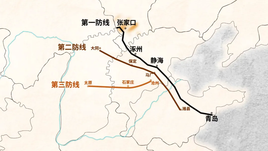 第三防線:在太原、石家莊、滄州等處,僅能作為第三防線,決不能只顧此線,而不集中兵力於第一、二線。