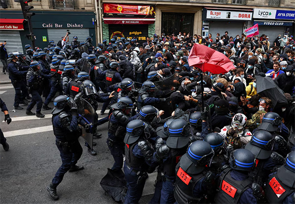 《紐約時報》注意到,10日清晨,約百名以年輕人為主的抗議者聚集在巴黎14區的奧爾良門,隨後遊行至阿萊西亞廣場,沿途推翻回收桶和電動單車,架設路障、點燃垃圾,阻塞交通並高喊口號:“即使馬克龍不願意,我們也在這裏。”但隨後,警車車隊與防暴警察趕到並使用催淚瓦斯後,抗議者很快被驅散。警方清理路障,恢復交通後,抗議者又在數個街區外重組,這種“貓捉老鼠”式的對抗預計將在法國各地持續一整天。