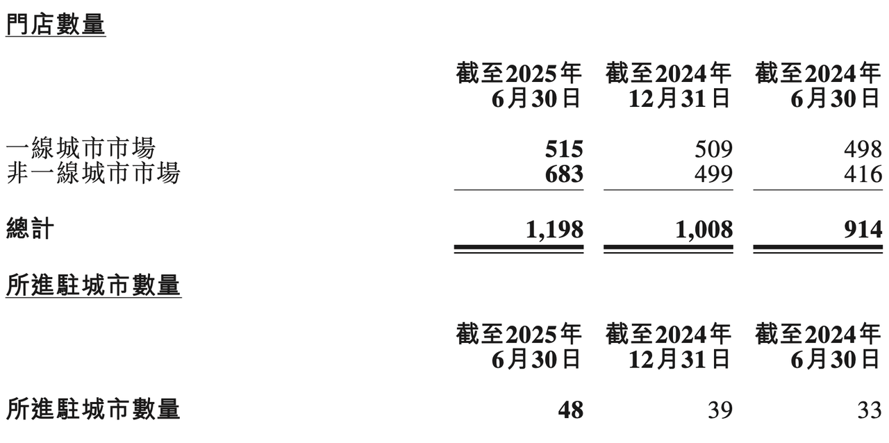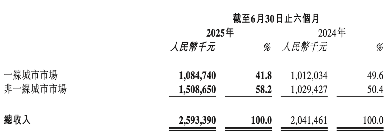 本次財報週期內,由非一線城市門店貢獻的收入佔比增加了近8個百分點,增速接近一線城市的七倍。自2024年非一線城市門店收入佔比超過一線城市後,兩者之間的差距持續擴大。